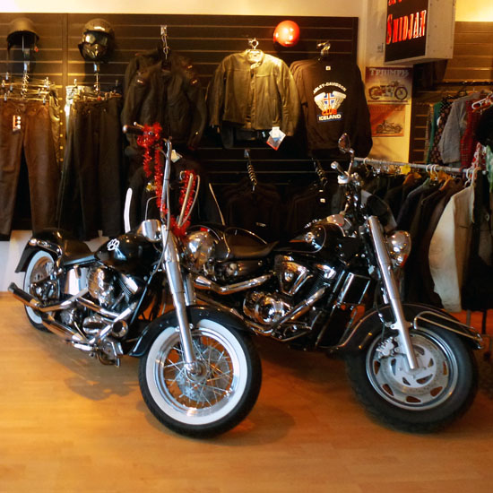 þar á meðal höfum við nýjan mótorhjólafatnað, rockabilly-fatnað og smávörur frá Smutty Smiff. Ásamt margsskonar leðurvörum frá Drekanum.